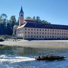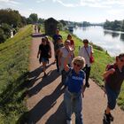 Wieder unten am Ufer angekommen, gingen wir getrennte Wege. Während das Hauptfeld noch einen Kilometer extra marschierte, um die Fähre zu nehmen, kürzte die Verfolgergruppe ab und ließ sich mit der Zille zum Kloster übersetzen. So kamen alle gleichzeitig und pünktlich zum Mittagessen im Gasthaus an. Der Weg hatte sich gelohnt, denn Essen und Bier waren ausgezeichnet!