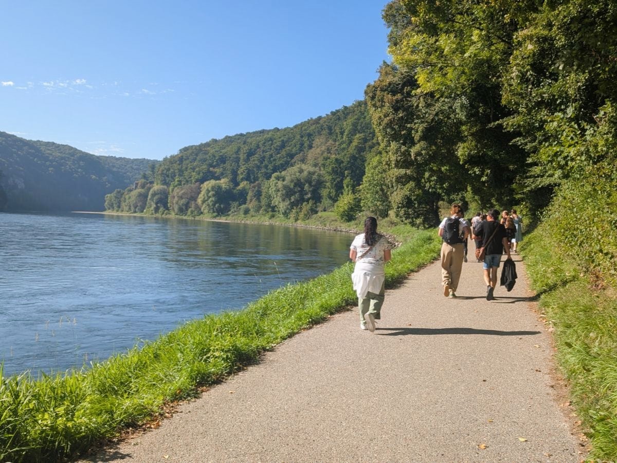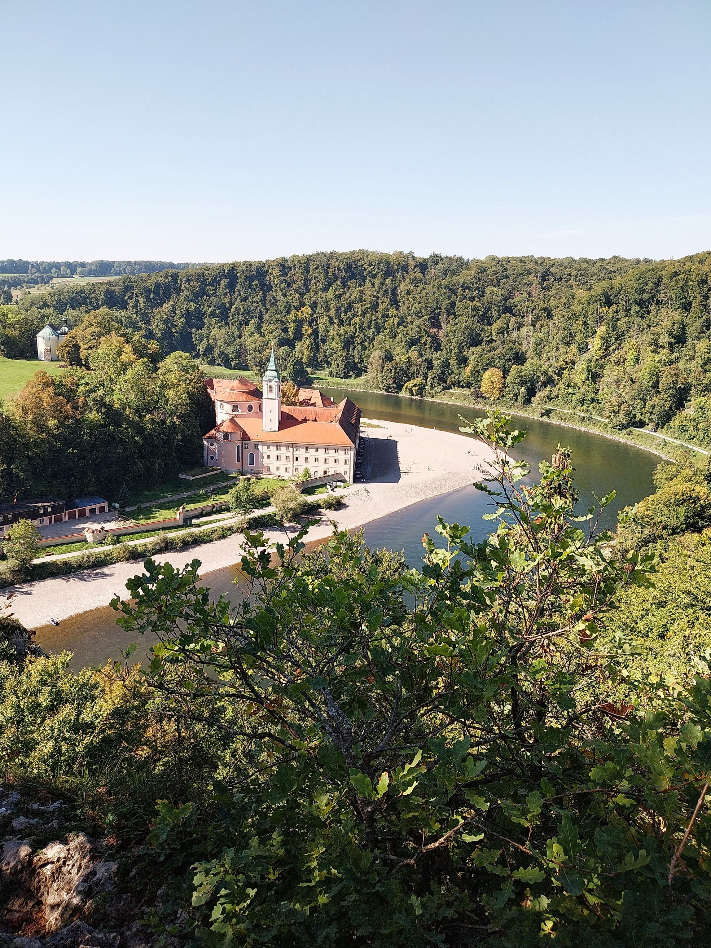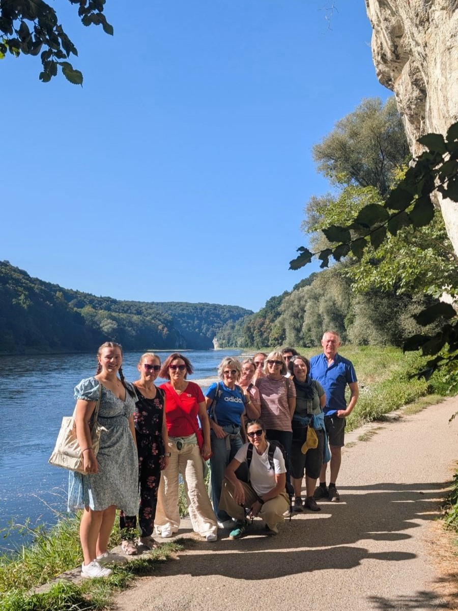 Dort ging es zu Fuß weiter, an der schönen Donau entlang nach Weltenburg. Das erste Stück des Weges genossen alle den lockeren Spaziergang bei bestem Wetter und den grandiosen Blick auf den Fluss. Dann aber ging es steil bergauf in den dunklen Wald hinein und wir kamen ganz schön ins Schnaufen. Oben wurden wir dafür mit atemberaubenden Aussichten auf den Donaudurchbruch und das Kloster Weltenburg belohnt.